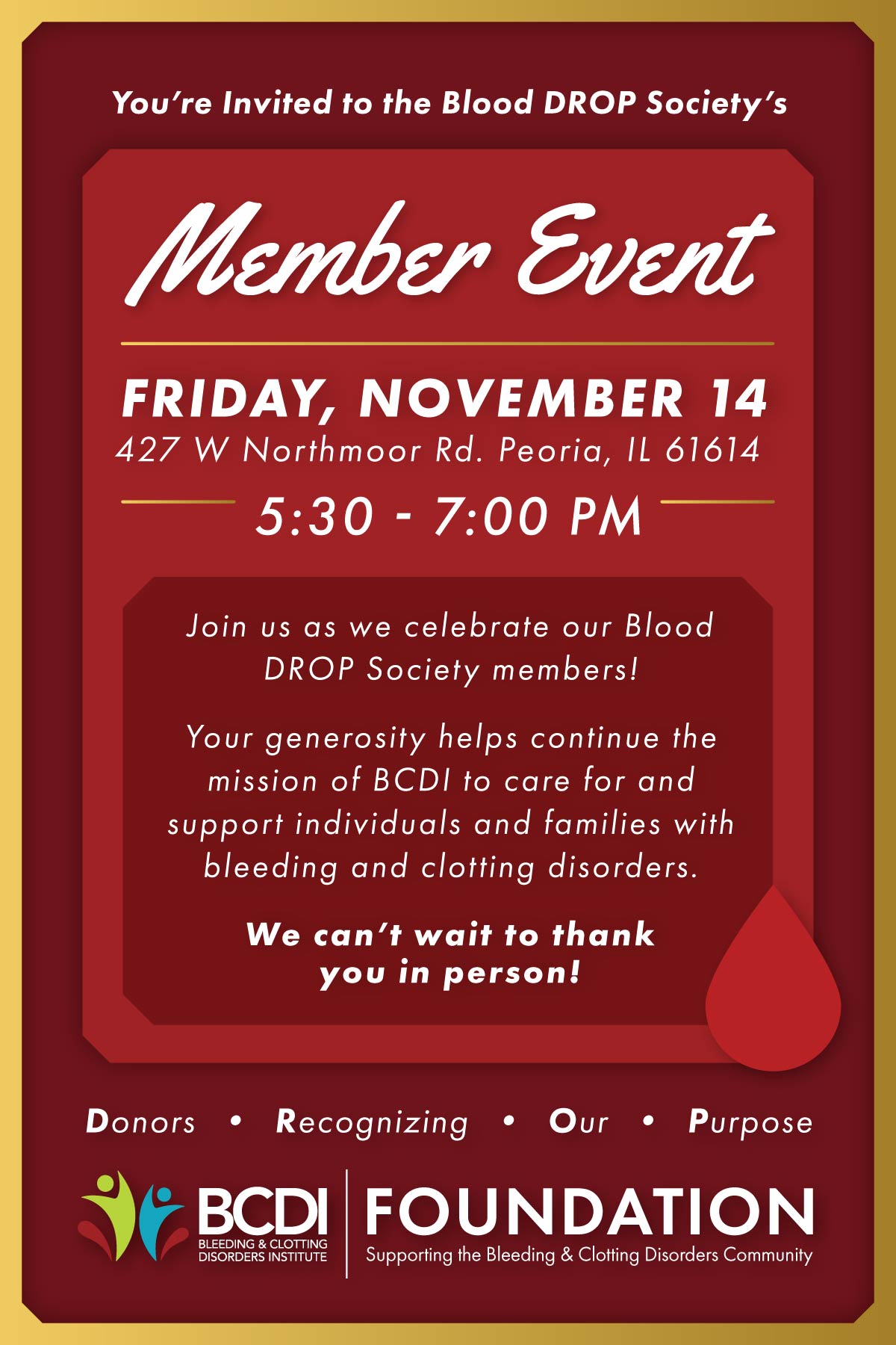 *In order to attend this event, you must be a member of the BCDI Blood DROP Society. To join this honored philanthropic group that benefits the bleeding and clotting disorders community in Illinois, please visit our membership page by clicking here.*